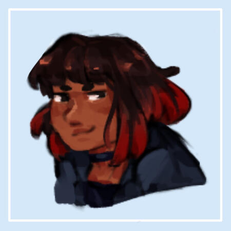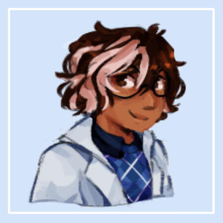 Leo is the protagonist of Out of Focus. After being tasked with cleaning out a storage shed at their school (alongside Claire), they found a broken, dirt-covered camera. They took a picture of Claire upon her request, and they were shocked to see the outline of a person in the background, seeing as the two of them were alone at the time. They realized that the camera can take pictures of ghosts, and they decided to profit off of it by opening up a shop that takes and sells photos of the dead. They’re a playful person, and they see the shop as their opportunity to have some fun before they have to head off to college. Their ego tends to fluctuate.